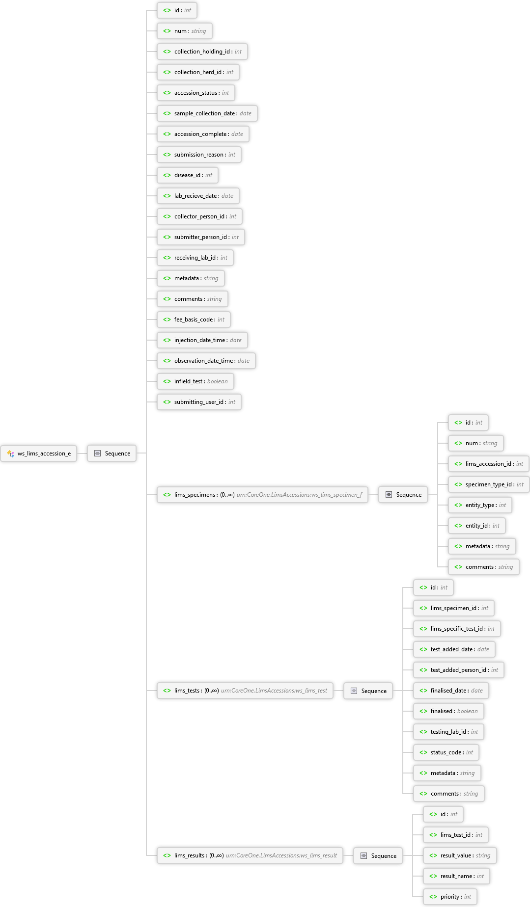 | LimsAccessions XML Schema : ws_lims_accession_e Complex Type |