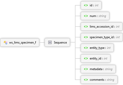 | LimsAccessions XML Schema : ws_lims_specimen_f Complex Type |