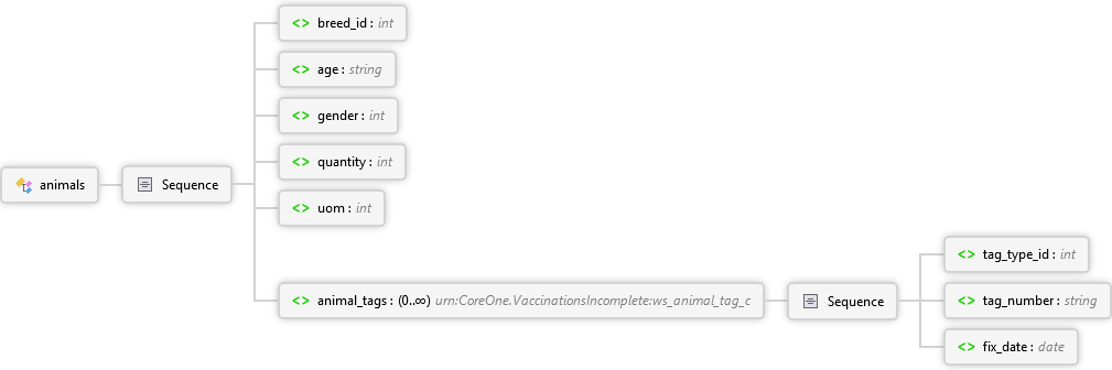 | VaccinationsIncomplete XML Schema : animals Complex Type |