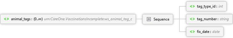 | VaccinationsIncomplete XML Schema > animals Complex Type : animal_tags Element |